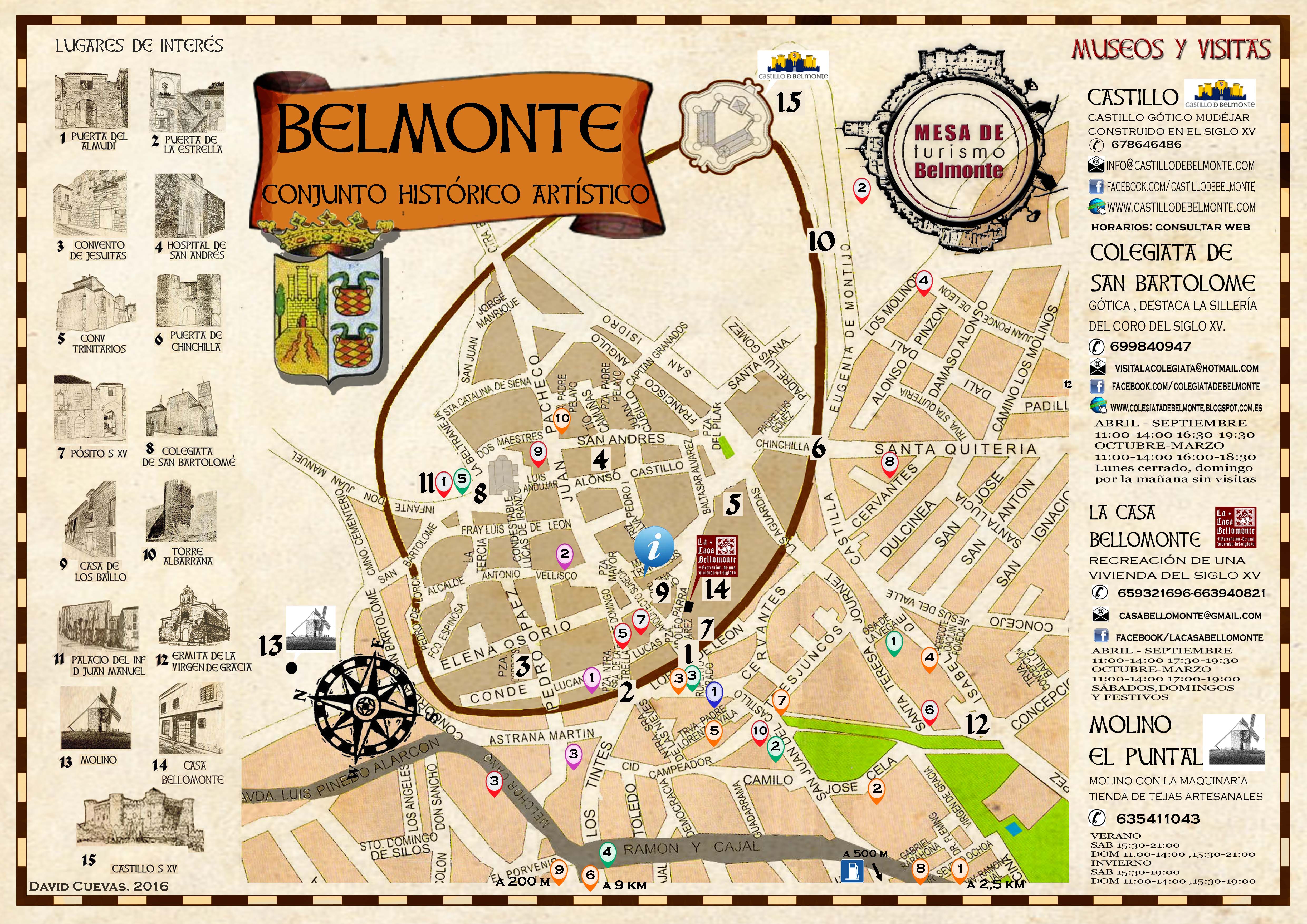 Belmonte es un municipio de la mancha conquense en que poder disfrutar de un viaje al pasado, calles estrechas, fachadas blancas de cal y piedra. Su centro histórico está salpicado de monumentos de su época de esplendor S. XIV-XV, aunque la localidad tiene vestigios de siglos anteriores. Belmonte, sin duda, es un pueblo para pasear sus calles, encontrando rincones de sorpresas y edificios impresionantes, los más destacados son la Colegiata de San Bartolomé, el Palacio del Infante Don Juan Manuel, y por supuesto el Castillo.