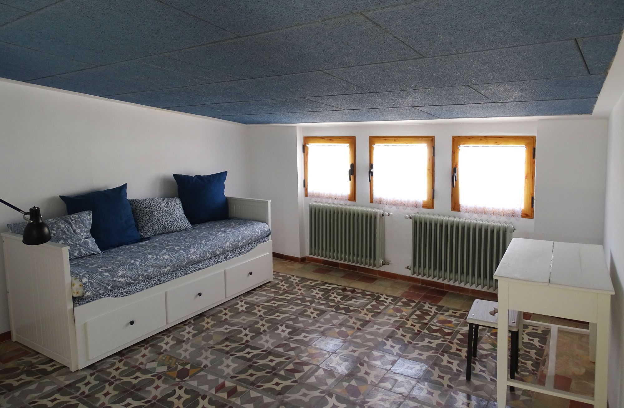 La última planta es una bonita buhardilla con un diván extensible a 1,60.