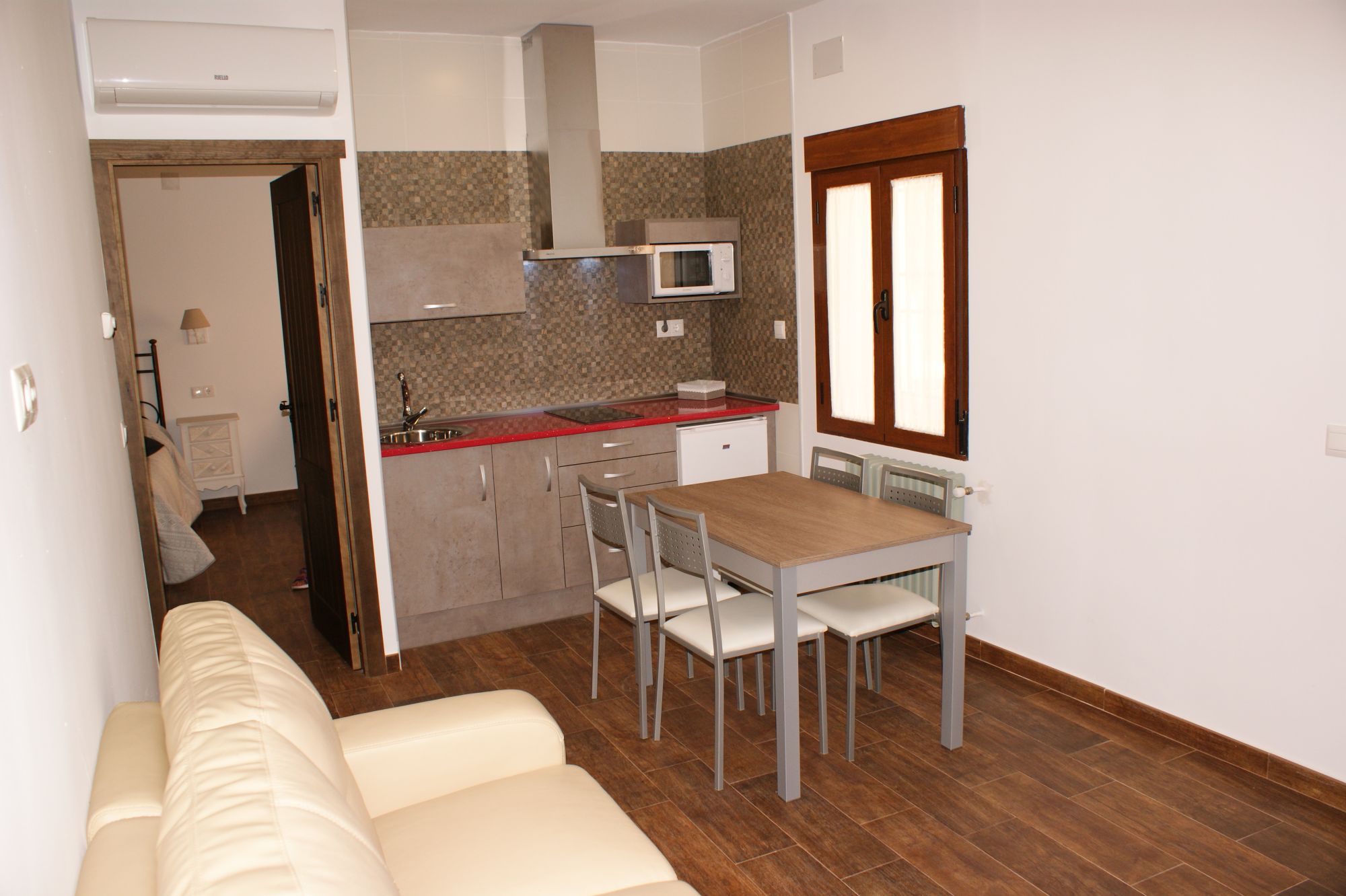 Las habitaciones de la Casa de Pedro Páez comparten la entrada entre ellas, la entrada tiene una pequeña cocina con vitrocerámica, microondas, tostador y un pequeño frigorífico con congelador, así como el menaje necesario. Además de una mesa con sillas y un pequeño sofá.